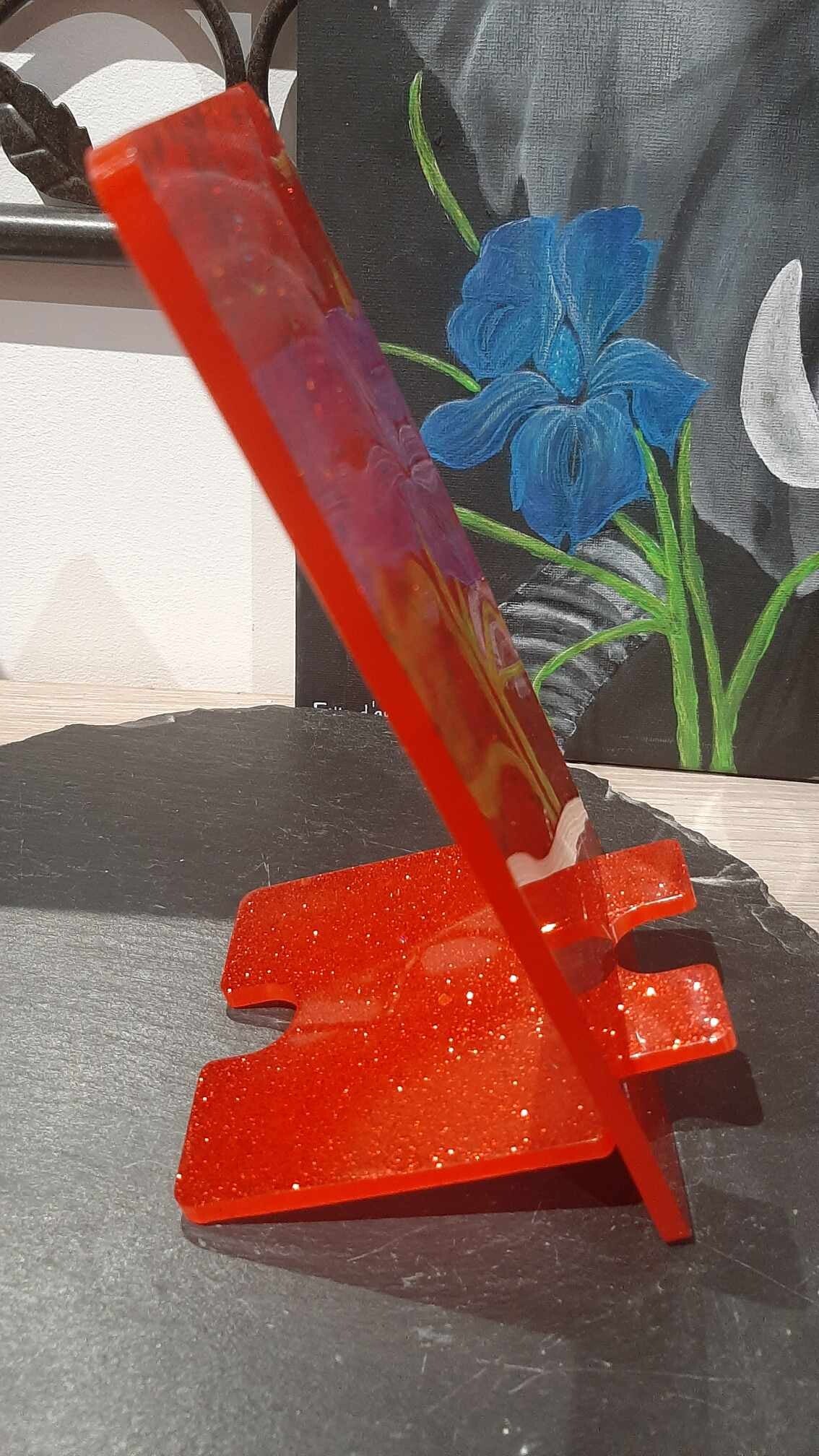 Porte téléphone rouge avec paillettes coeur et sequin doré sur un coté. Environ 20,5cm x 9cm