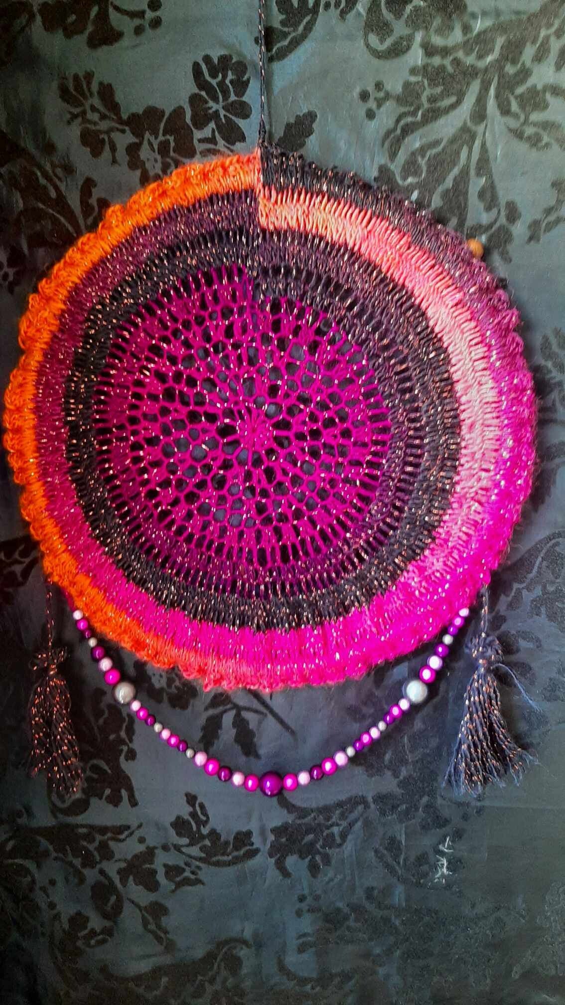 Attrape rêves fait au crochet. Environ 27cm. Perles magiques qui s'illuminent avec la lumière