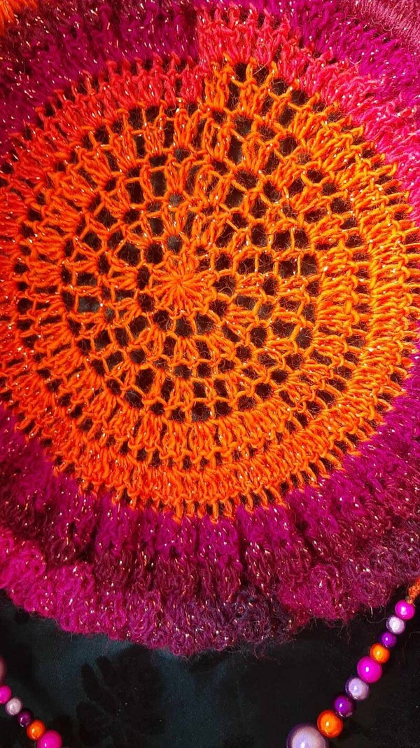 Attrape rêves fait au crochet. Environ 22cm de diamètre. Perles magiques qui s'illuminent avec la lumière