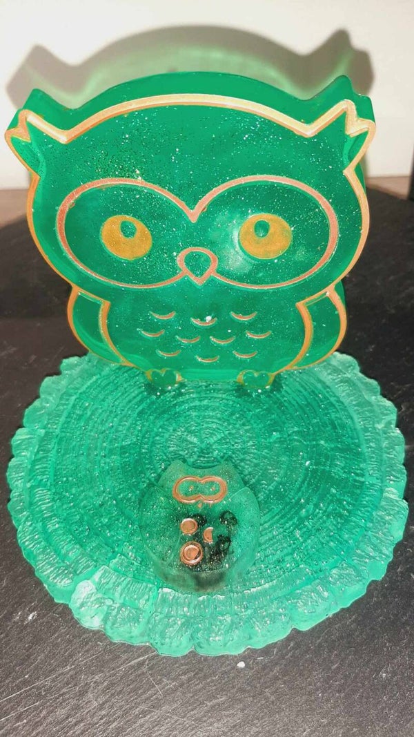 Porte téléphone hibou. Pour poser son téléphone debout. Environ 10,5 cm de hauteur x 11,5 cm