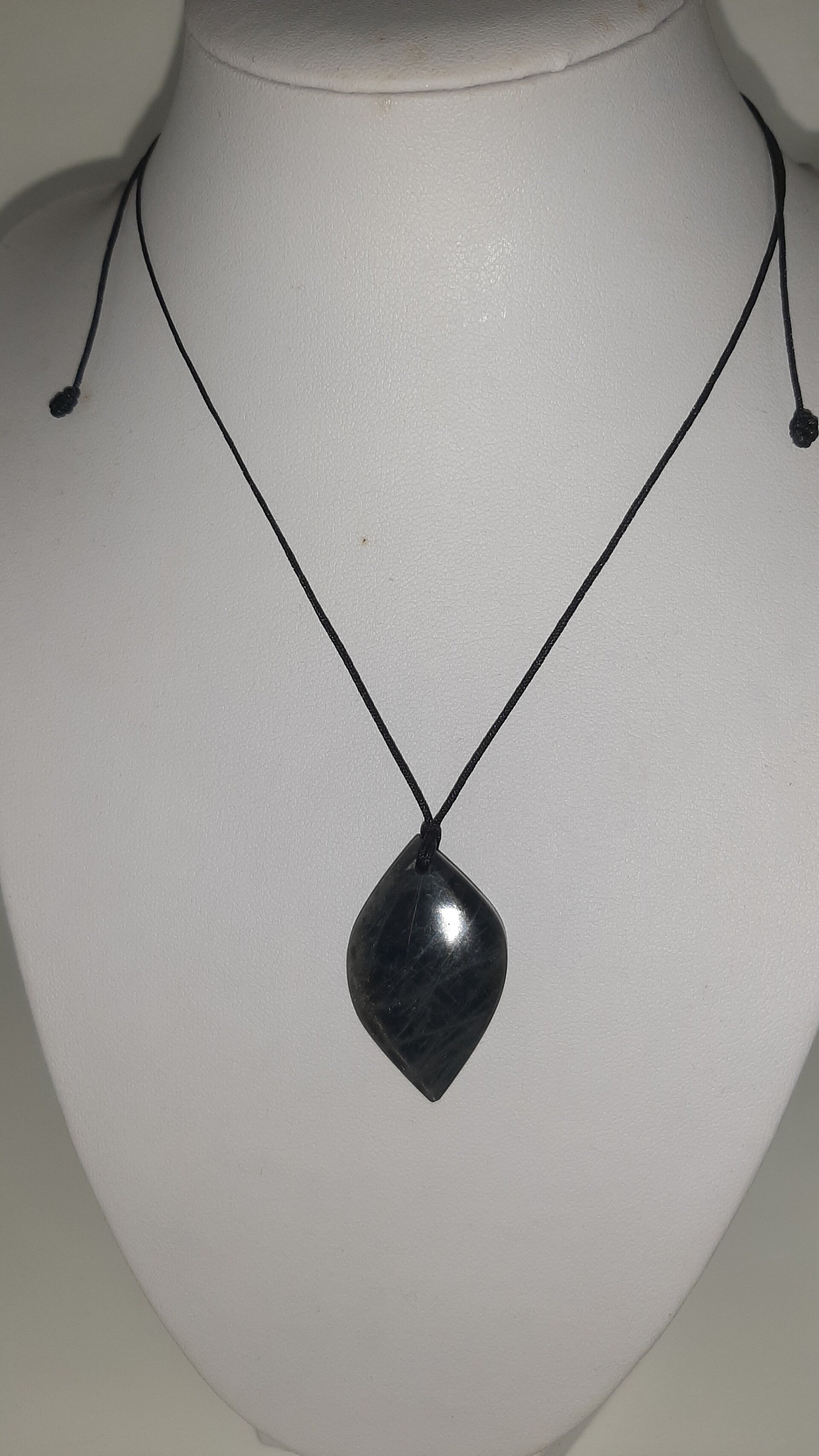 Véritable labradorite aux reflets bleus.  Cordon réglable.  Vous pouvez ainsi le porter soit au ras du cou ou plus long