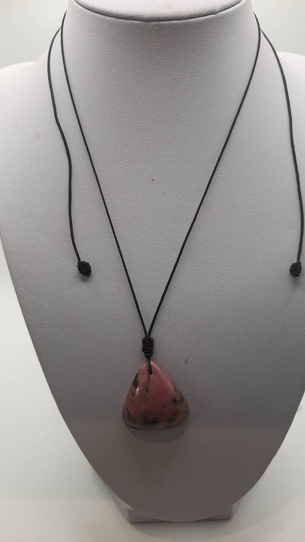 Véritable rhodonite. Cordon réglable. Vous pouvez ainsi le porter au ras du cou ou plus long