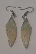 Boucles d'oreilles dans les tons vert jaune nacré. Mesurent environ 6 cm de hauteur sur 1,3cm de largeur