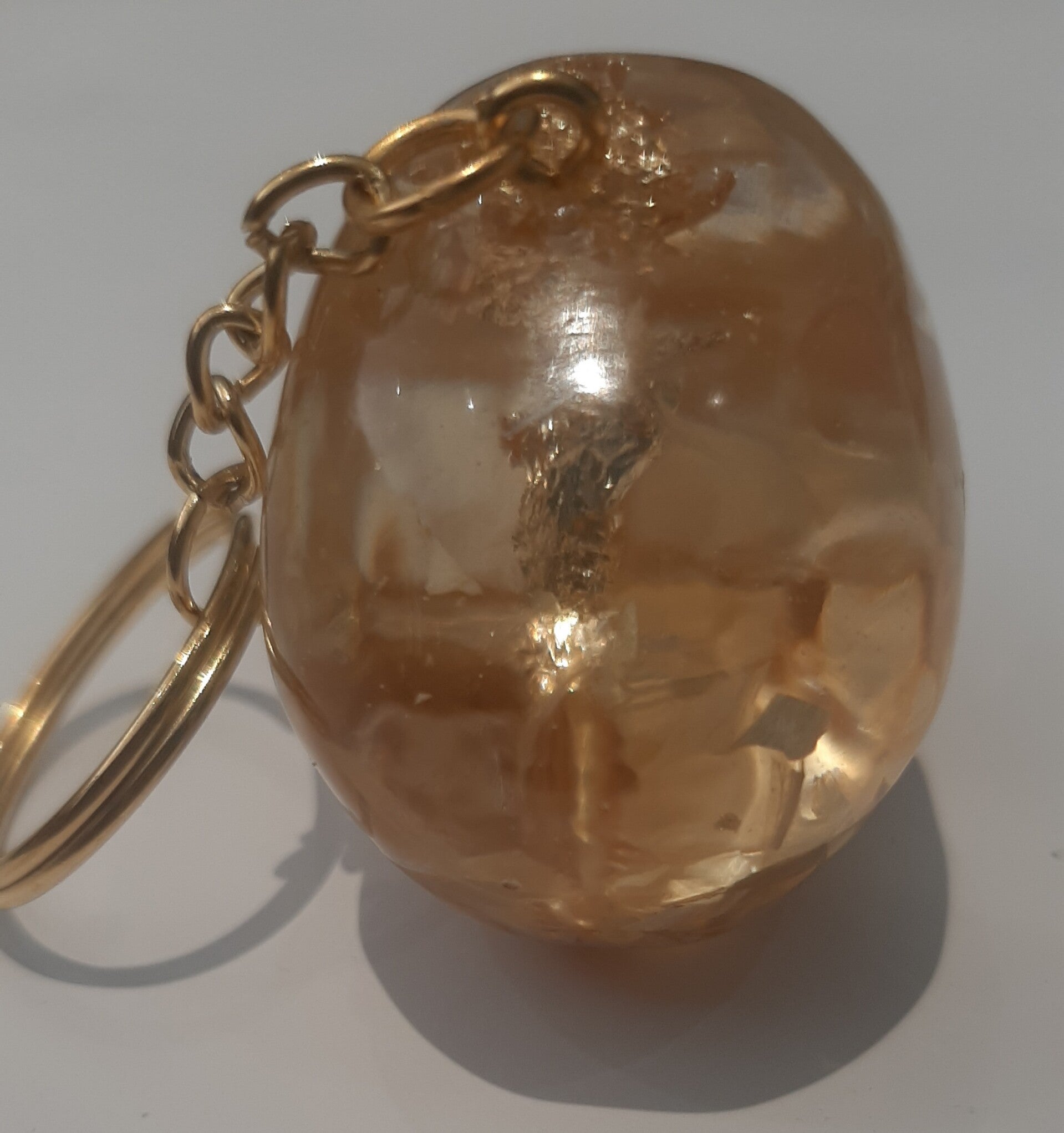 Porte clefs crâne fait main avec pétales de fleurs et feuille métallisée doré