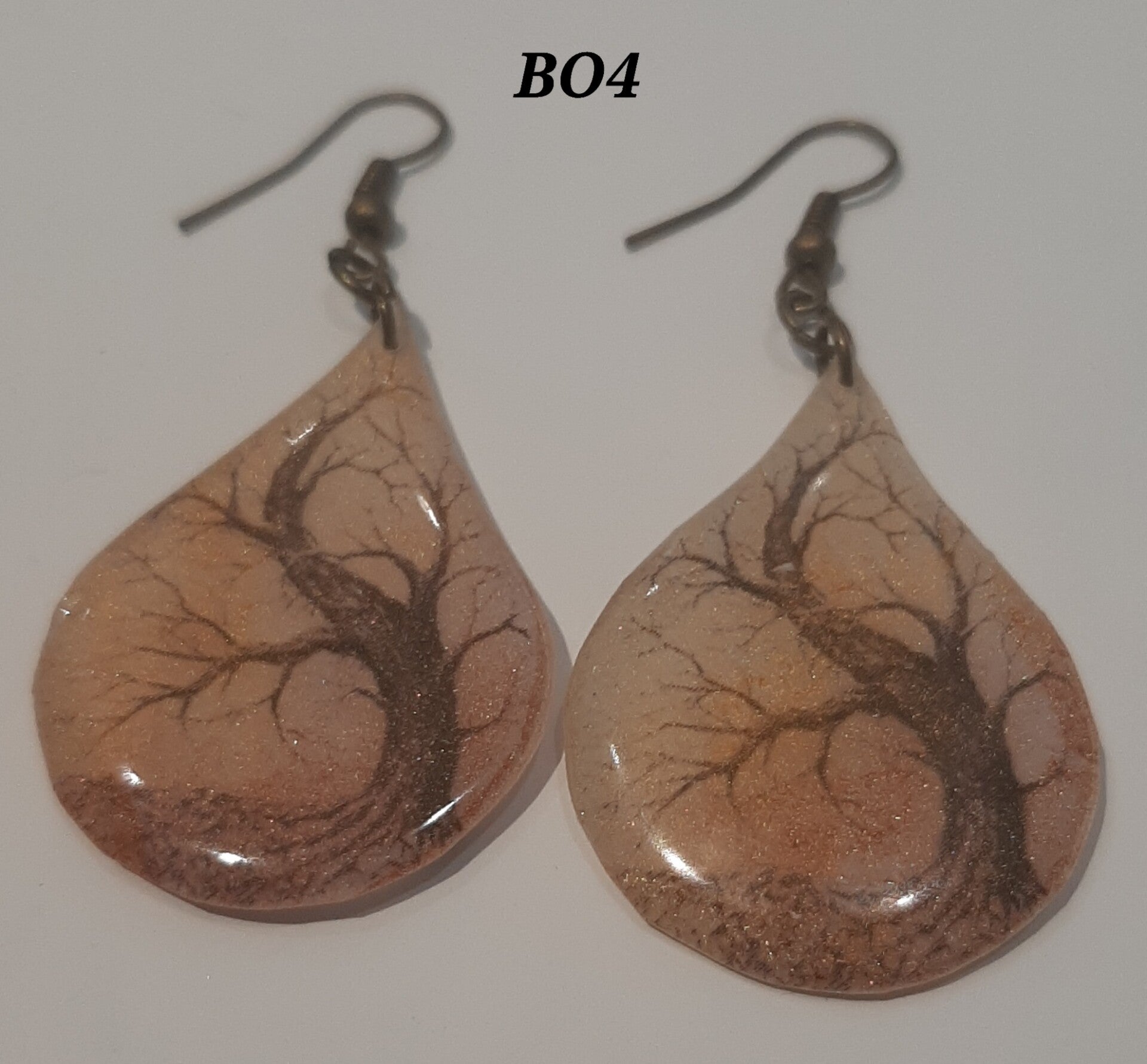 Boucles d'oreilles arbre magique de la forêt d'Harmonia recouvertes de poudre de fée. Elles mesurent environ 6,3cm de hauteur x 2,8cm de largeur