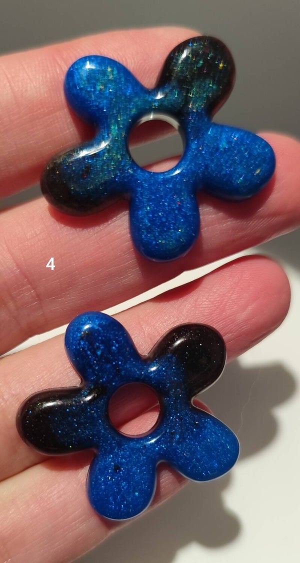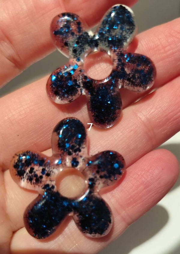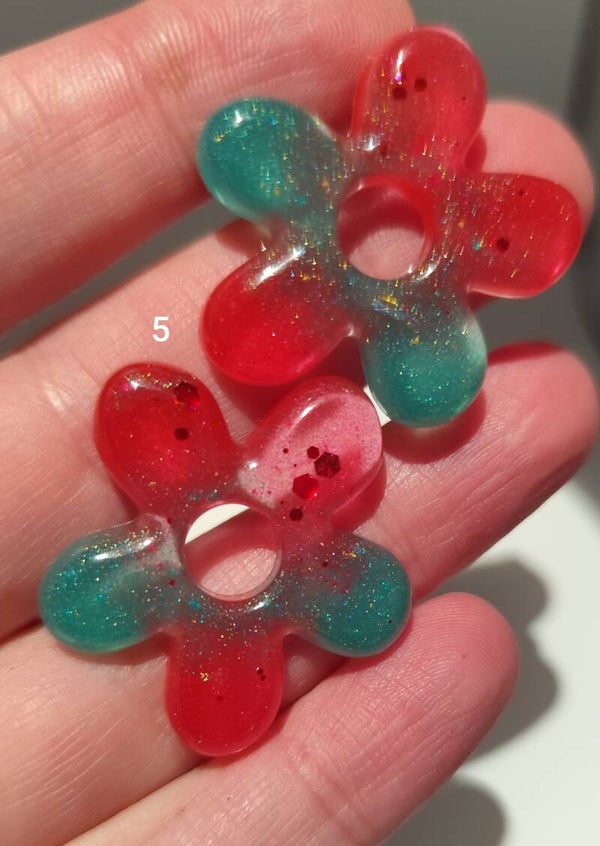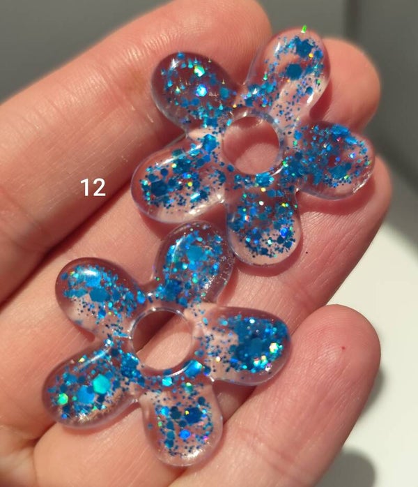 Pampilles fleurs Lucile en résine.Elles mesurent 3,5 cm. Elles existent en plusieurs couleurs. Vendues par paire