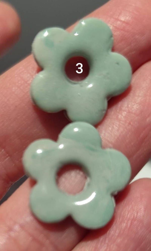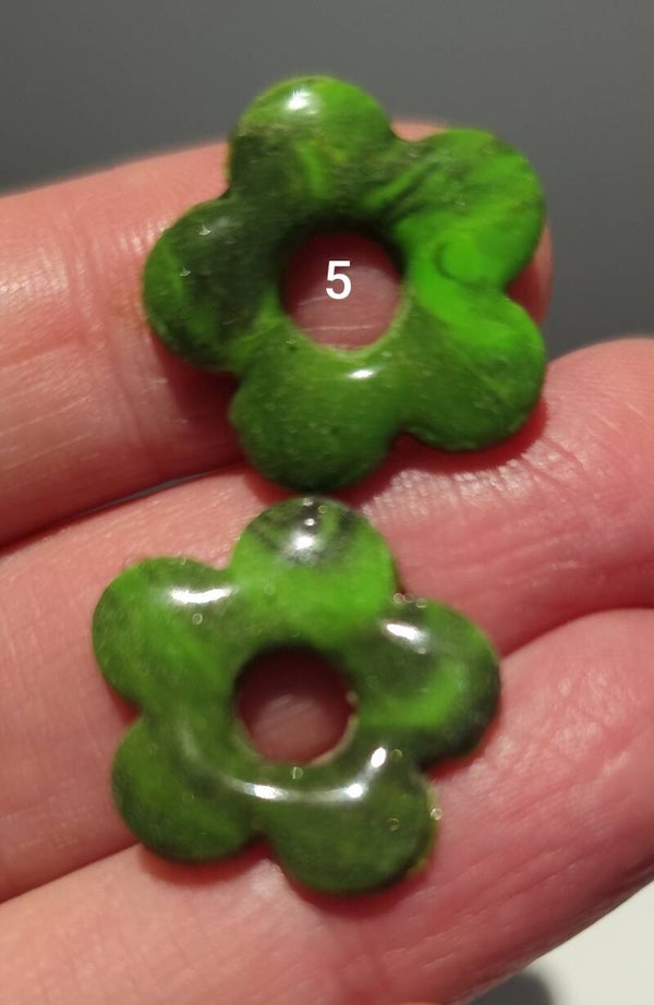 Pampilles Jeanne en polymère 5 pétales. Environ 2 cm . Recouvertes de résine. Existent en plusieurs couleurs. Vendues par paire