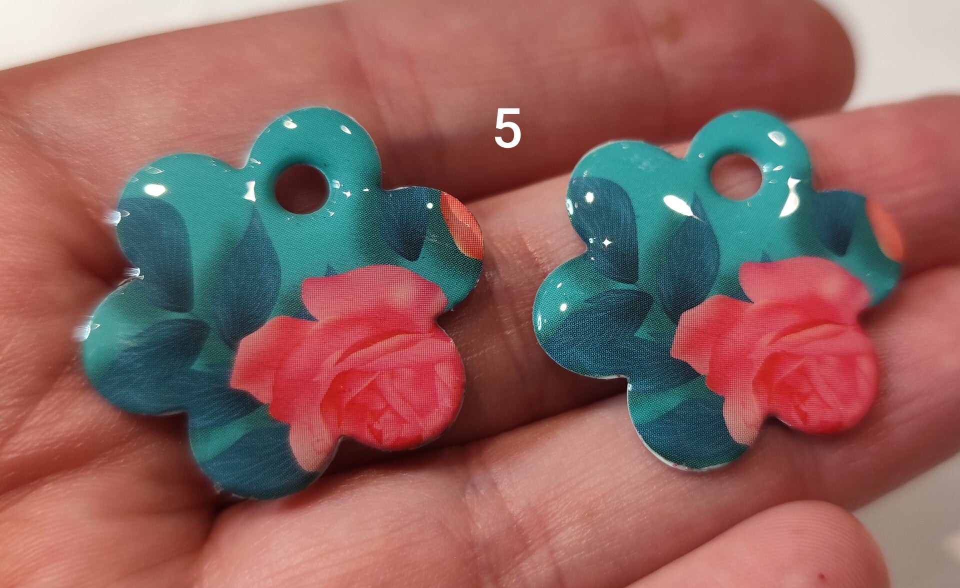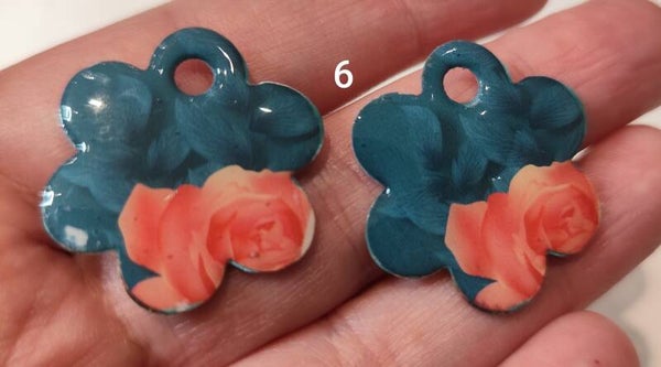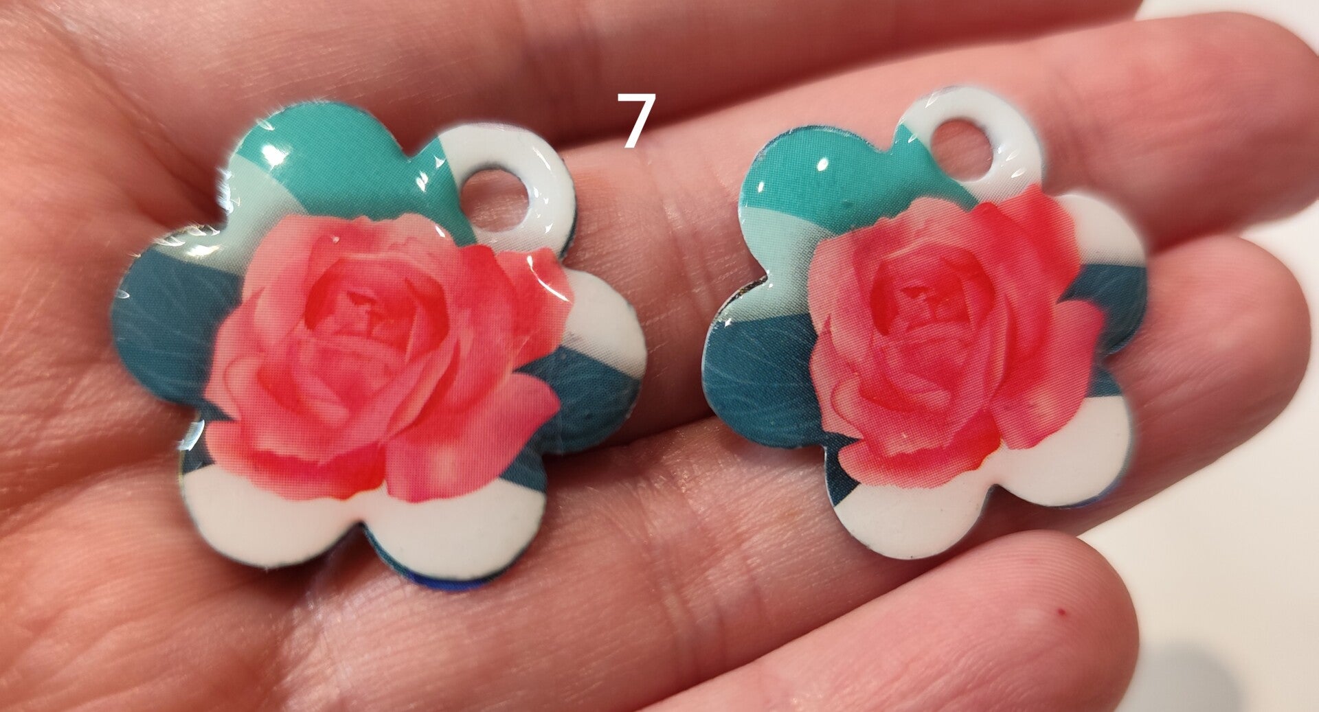 Pampilles imagées thème fleurs. Elles peuvent avoir des irrégularités mais ça fait leur charme. Environ 3 cm de diamètre. Interchangeables avec les créoles.Vendues par paire