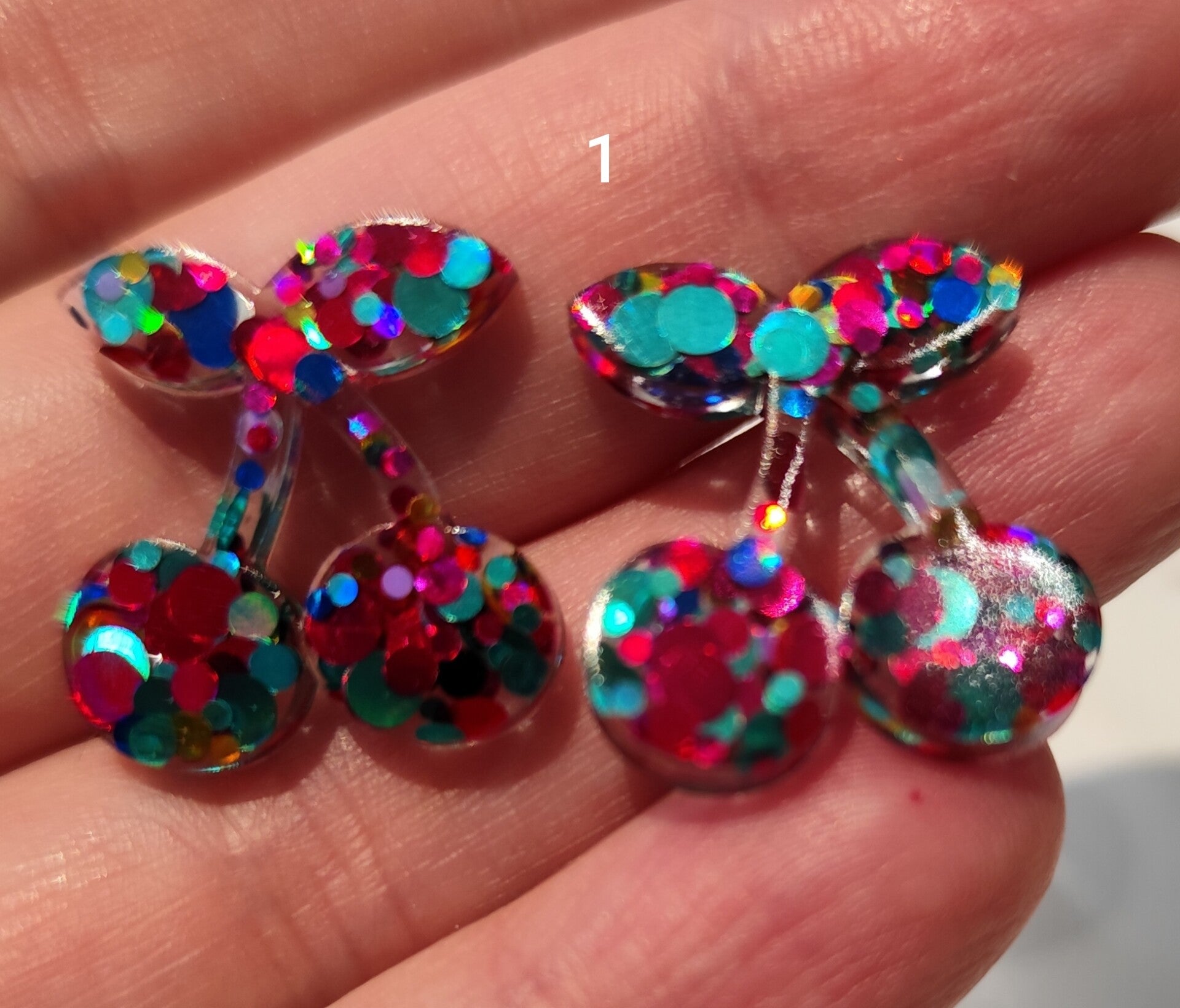 Pampille cerise fait en résine. Elles mesurent 2 cm x 2cm. Vendues par paire